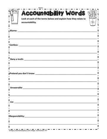 Some of the worksheets for this concept are accountability. Web worksheets are accountability self examination work, personal accountability work, creating accountability work, accepting personal responsibility, the blame game a. People who take responsibility for their actions speak up, and they look for solutions when there's a problem.