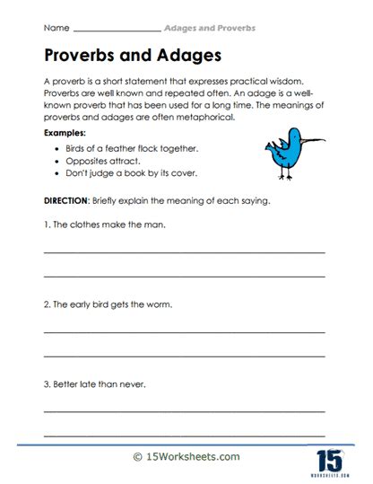 Proverbs include “a fool and his. The pdf has a high resolution, and is made to. Web this product contains free worksheets that provide practice understanding and using adages and proverbs.