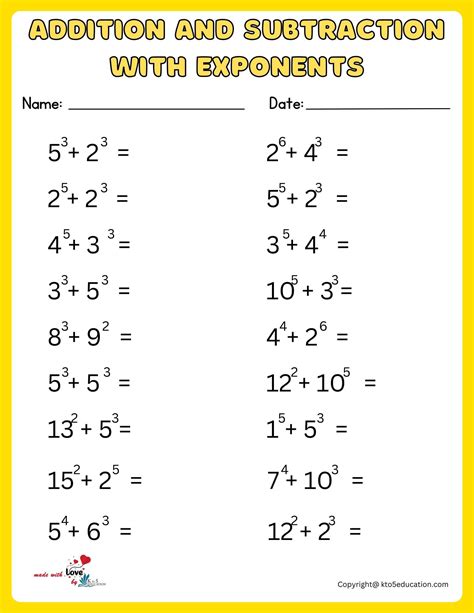 Web Exponents Worksheets For Students Include Simple Problems In Which Exponents Are Combined Using Addition.