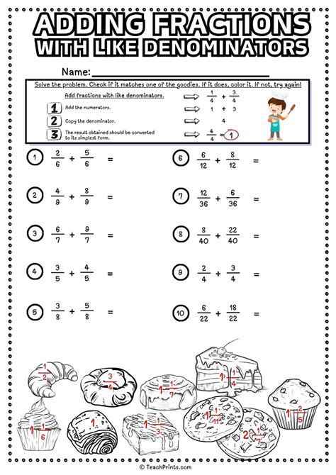 Adding Fraction With Like Denominators Worksheets. Worksheets for teaching basic fractions, equivalent fractions,. Free interactive exercises to practice online or download as pdf to print.