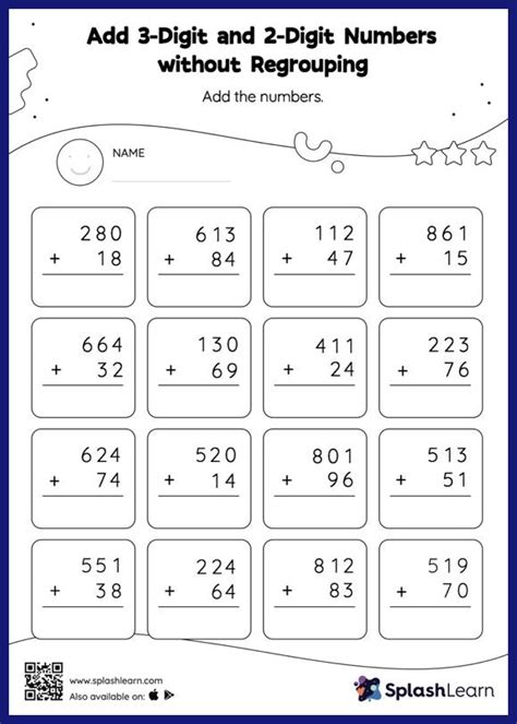 Solve the addition problems on the worksheet below. Adding the ones gives us: Adding 2 and 3 digit number without regrouping.