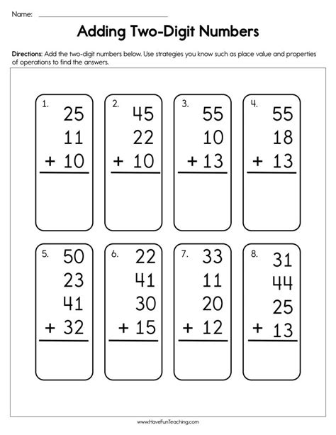 Adding Two Digit Numbers Worksheets. Students practice adding numbers in the correct columns without. Adding to 20 activity sheet 1.
