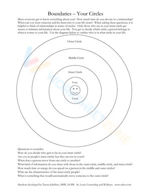 Each question will prompt exploration of topics. Web boundaries circle worksheet boundaries circle is a tool to help you decide with whom and how much you share of your personal space, time, and intimate information. Web what is a boundaries circle worksheet pdf?
