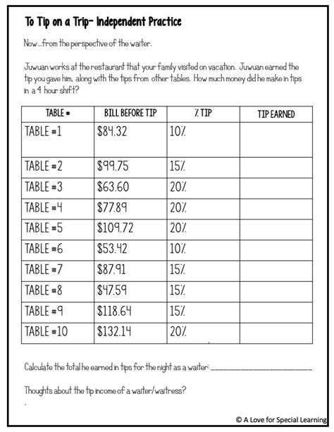 Calculating Tip Worksheets. Web rule to live by is to leave a tip anyway because it’s part of a person’s pay. This product includes 96 task cards and is a great way for students to practice functional life reading and math skills.