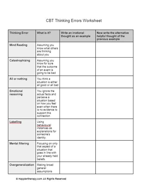 Web on this worksheet there are 6 common forms of thinking errors: Web cognitive behavioural therapy (cbt) targets criminal thinking as a factor. Seeing only the worst possible.