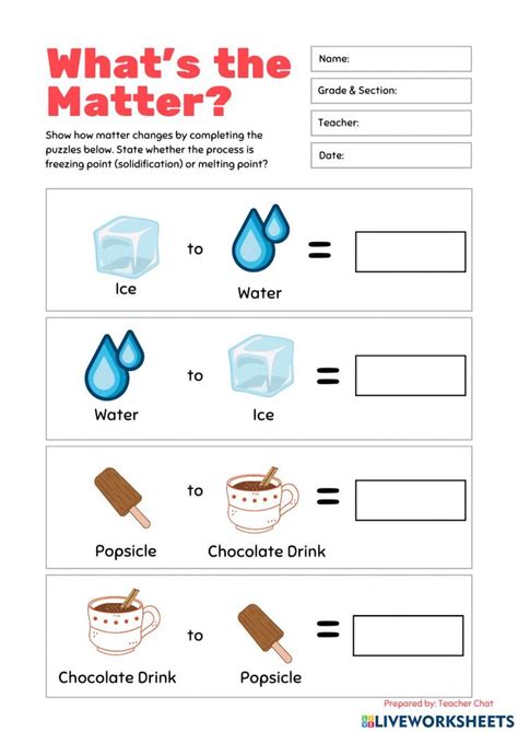 Actividad de Changes in matter from es.liveworksheets.com